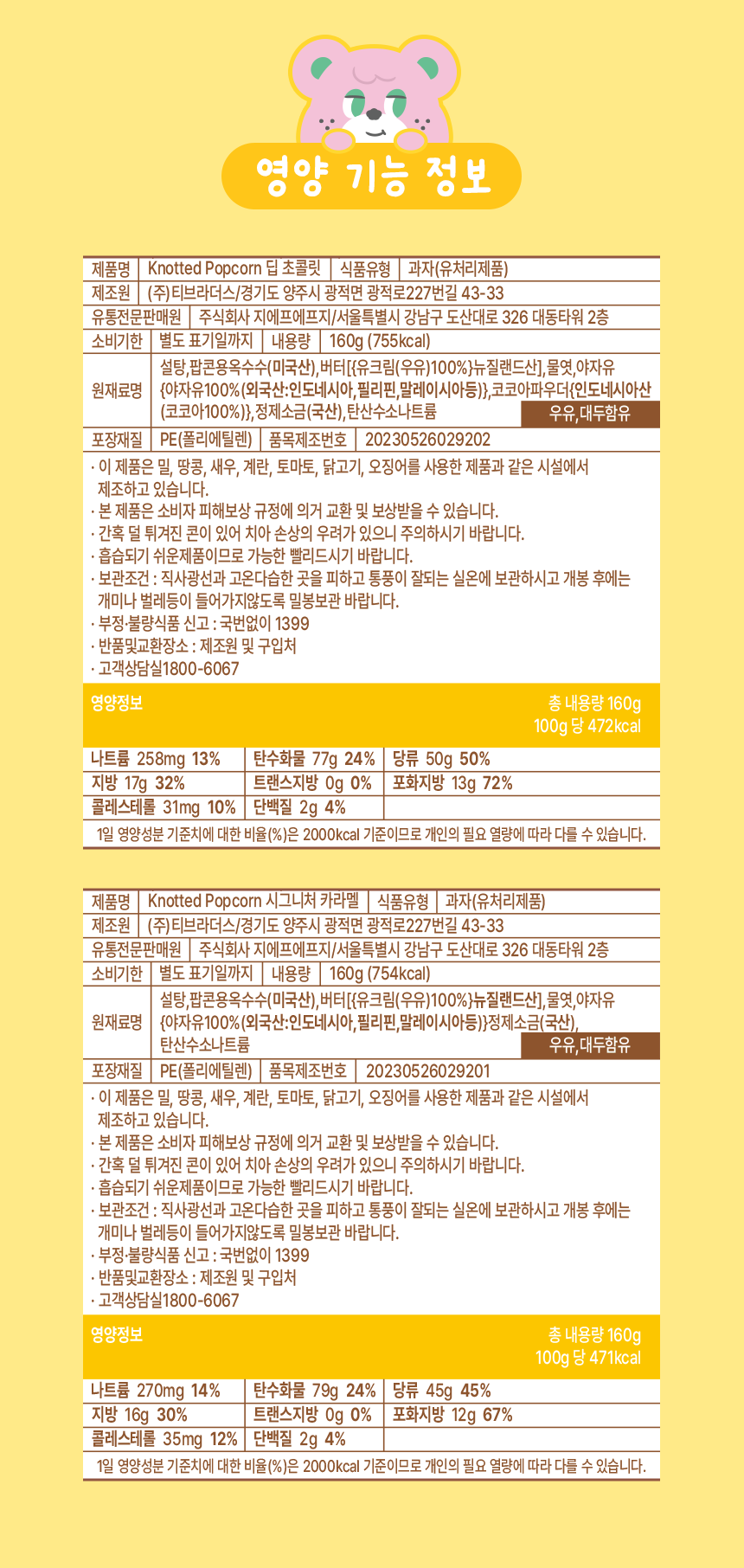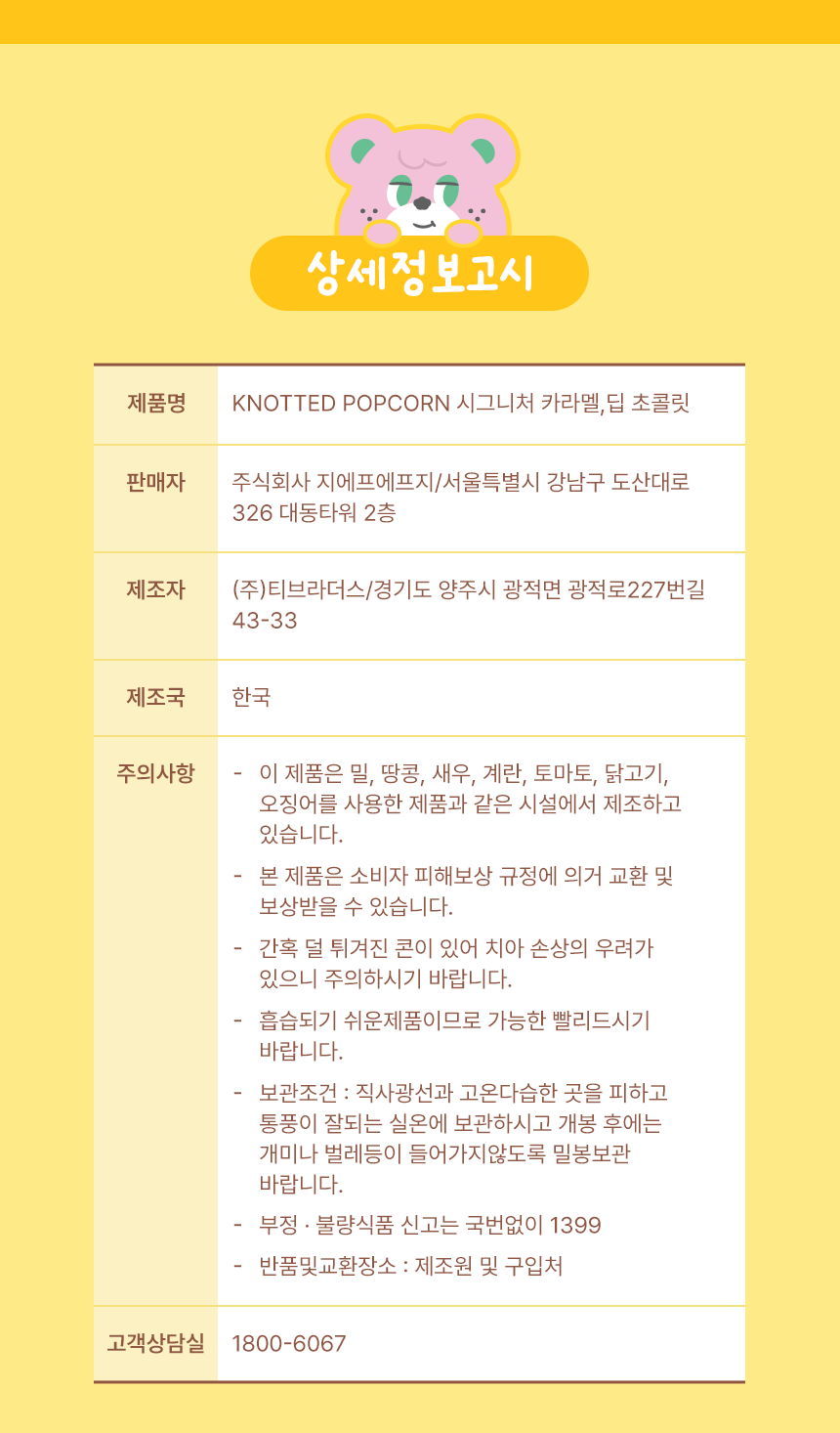 [노티드] 팝콘 2종 (시그니처 카라멜, 딥 초콜렛)