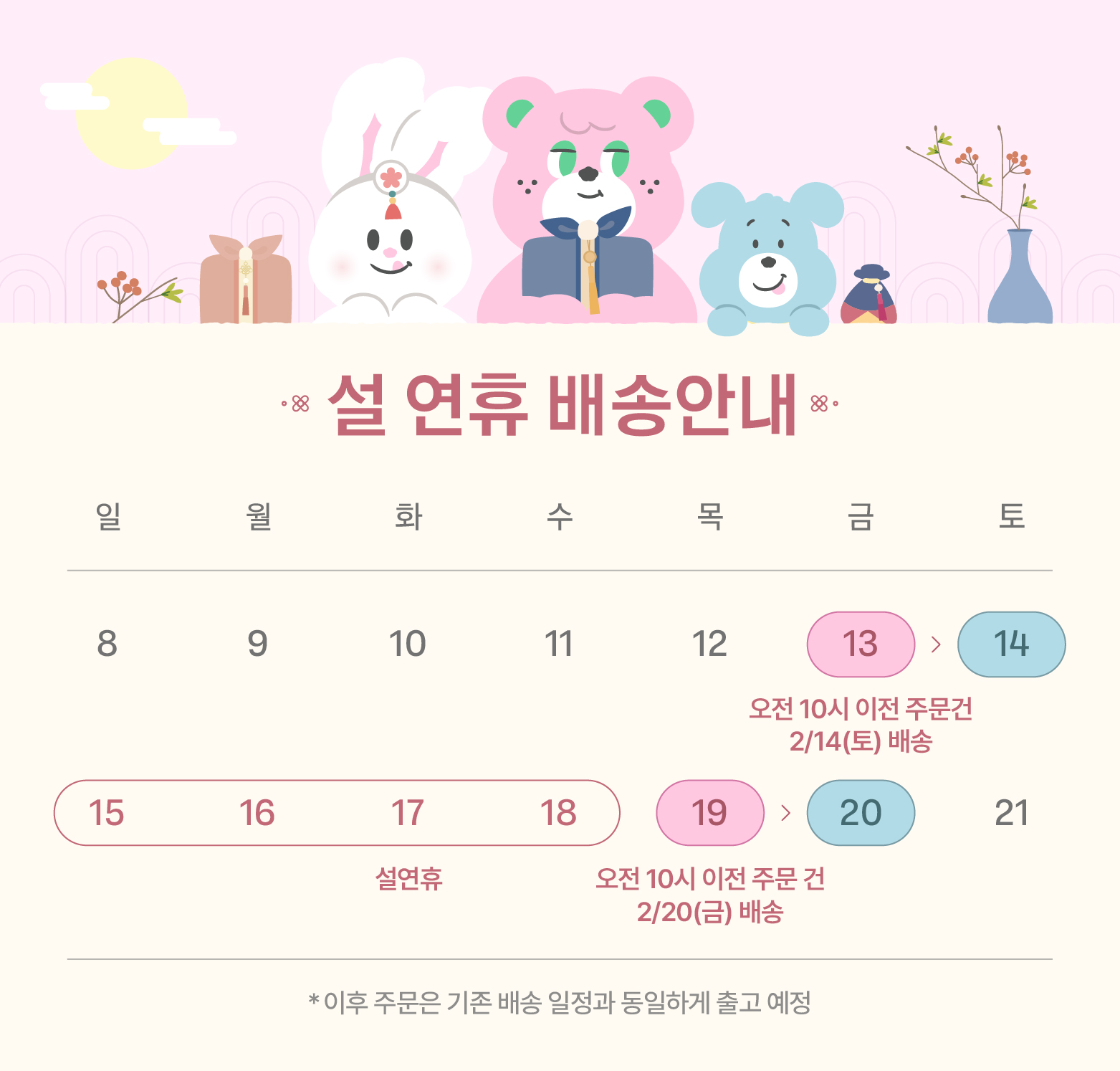 *ex. 2월 14일 픽업 희망 시, 2월 12일 17시까지만 예약/주문취소 및 환불신청 가능